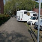 Die nächste Etappe führt uns ein letztes Mal nach Luxemburg. In Rosport kurz hinter Trier nutzen wir die Gelegenheit zum Tanken. Ohne Pause geht es dann weiter nach Nordrhein-Westfalen. Kurzer Zwischenstopp noch einmal bei der Verwandtschaft in Schaan (Mitbringsel überreichen), dann suchen wir uns einen Übernachtungsplatz. Die Wahl fällt diesmal auf den Parkplatz am Park des Schlosses Wickrath. Schön im Grünen gelegen. Leider – so müssen wir später feststellen – sind hier noch schlimmere Tiefergelegte unterwegs als an der Völklinger Hütte. Nicht nur, dass die kleine Picknick-Station samt Mülleimer (die eigentlich für übernachtenden Wohnmobilisten gedacht ist) von den Prolls komplett mit MacDonalds- und ähnlichem Fastfood-Dreck vermüllt wurde. Die Idioten liefern sich hier auf engem Raum direkt auf dem Weg zwischen den links und rechts parkenden Womos Rennen bis unter die kleine Unterführung, wo dann wegen des „schönen“ Halls natürlich noch mal extra quietschend in die Eisen gegangen oder aufgeheult wird. Ein echt armseliges Freizeitverhalten. Wir entscheiden uns, diesen Schwachsinn weitgehend zu ignorieren, damit die Raser die Lust am Posen verlieren. Leider gibt es aber offenbar auch in Zeiten der Emanzipation immer noch Mädels, die solche Typen anhimmeln. Deshalb dauert der Spuk dann doch länger.