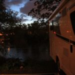 Um kurz nach 20.30 Uhr kommen wir auf dem offiziellen Stellplatz Allee de la Plage direkt an der Mosel an. Gleich nebenan gibt es auch einen  Campingplatz, aber wir bevorzugen ja das freie bzw. Stellplatz-Stehen. Nachdem wir all unser Schul-Französisch zusammengekratzt haben (später entdecken wir, dass es auch eine Deutsch-Taste gibt), entlocken wir dem Parkautomaten die Info, dass von 19 Uhr bis 9 Uhr morgens das Parken frei ist und es dann wohl ein spezielles Halbtages- bzw. Tagesticket zum Sonderpreis von zwei bzw. vier Euro gibt. Das allerdings – so reimen wir es uns mit Hilfe einer netten Womo-Alleinfahrerin aus Bremen, die (samt ihrer beiden Hunde) auch gerade angekommen ist, zusammen – kann man erst morgens ab 9 Uhr aufrufen und zahlen. Wir quatschen noch eine ganze Weile und tauschen Womo-Erfahrungen aus, bis es richtig dunkel ist.
