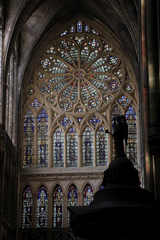Wir laufen weiter zum Touristenbüro der Stadt, gleich neben der Kathedrale, decken uns mit Postkarten, Briefmarken und Infos (unter anderem der Info, dass wir wegen des G7-Treffens keine Chance auf einen Besuch des Centre Pompidous haben, weil der Bereich komplett abgesperrt ist) ein. Dann besichtigen wir die Kathedrale. Wunderschön. Vor allem die Fenster (ein paar sind von Chagall). Alles schön lichtdurchflutet. Kein Wunder, dass man die Kathedrale auch „Laterne Gottes“ nennt.