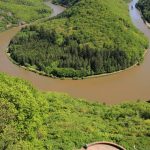Wir lassen uns heute mal wieder Zeit fürs Aufstehen und Frühstücken. Erst gegen Mittag rollen wir wieder auf die Piste. Zuerst nutzen wir die Entsorgungsstation in Mettlach (Bohnenstraße 2), dann fahren wir die Straße direkt an der Saar noch ein Stückchen weiter bis zum Parkplatz unten an der Saarschleife (Steinbach). Hier könnte man wahrscheinlich ganz gut über Nacht stehen. Aber wir sind ja quasi gerade erst losgefahren. Also kehren wir um und steuern Richtung Mettlach-Orscholz, um uns die Saarschleife von oben anzugucken.