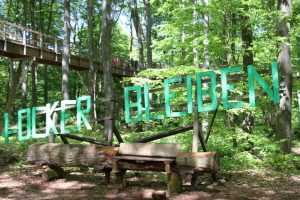 1250 Meter schlängelt sich der barrierefreie Baumwipfelpfad durch Buchen, Eichen und Douglasien in Richtung Saarschleife. An didaktischen Stationen wird Wissenswertes über das Leben im Wald anschaulich vermittelt. Es gibt eine Mini-Wackelbrücke und – für etwas Mutigere – eine Röhrenrutsche, die ein kleines Stück parallel