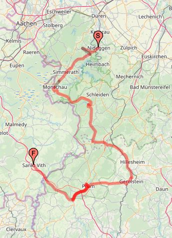 Fünfter Tag:  Monschau – Oleftalsperre – Gerolstein – Prüm – Pronsfeld – St. Vith (B)