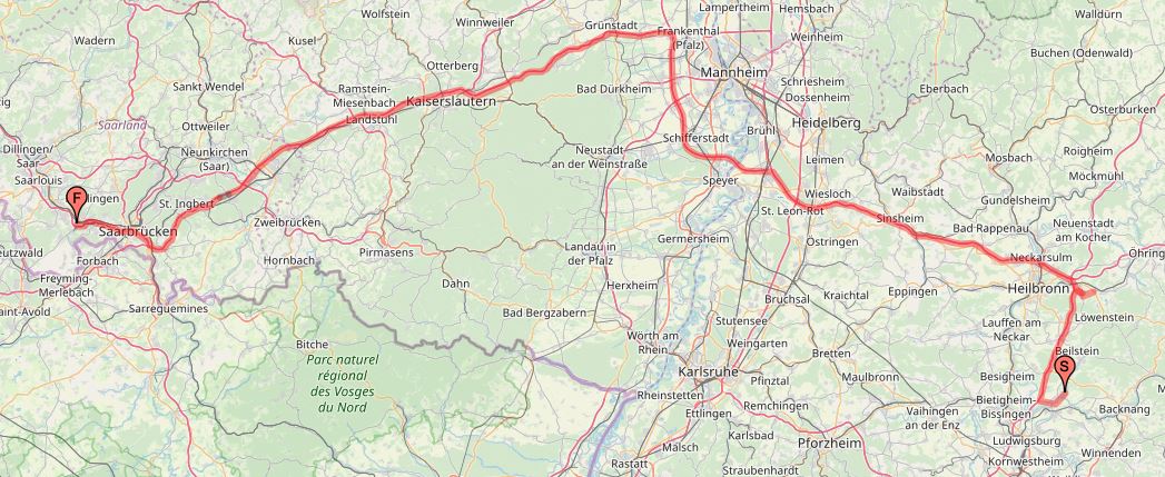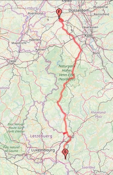 Die erste Reise soll erst einmal schnurstracks in den sonnigen Süden führen – was natürlich nur bedeuten kann: in die Eifel  und nach Lothringen (und ein bisschen drumherum) 😀