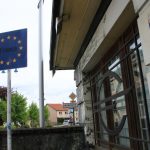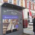 Wir parken auf den ausgewiesenen Womo-Stellplätzen nahe des Thermalbades (es gibt eine kleine Ver- und Entsorgungsstation ist aber von einem Womo-Dauersteher – wie es scheint – blockiert. Immerhin werden wir Altpapier und Kartonagen los. Dann talpen wir los, irren ein wenig durch den weitläufigen Kurpark, finden dann aber doch in die Innenstadt. Dort fällt uns als erstes ein Baguette-Automat auf (24 Std. bereit; 1,10 Euro pro Baguette). Die sehen wir später in Frankreich noch einige Male. Das Baguette unterm Arm ist wohl doch kein Frankreich-Klischee. Aber jetzt wollen wir noch Fotos an der schon am Vortag durchquerten alten Grenzstation machen.