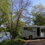 Um 19.40 Uhr trudeln wir auf dem Parkplatz ein – mit direktem Seeblick und Kanada-Landschaft drum herum. Zwei Womos stehen schon dort, aber es ist genug Platz, dass man sich nicht auf der Pelle hockt. Wir machen es uns gemütlich, braten die Hamburger, futtern zufrieden, saugen die See-Atmosphäre ein und gucken später noch Chelsea gegen Frankfurt samt Elfmeter-Finale. Das bleibt zwar ohne Happy End, aber wir fallen trotzdem happy in die Federn.