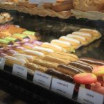 Da die Bimmelbahn, auf die wir gehofft haben, erst im Sommer fährt,  spazieren wir durch die Fußgängerzone Richtung Wasser und Parks. An der Mosel geht es zurück Richtung Moyen Pont und Temple Neuf. Zurück in der Fußgängerzone stärken wir uns mit einem extrem leckeren Burger beim „Kebap Burger“ (gleich neben McDonald’s). In der Boulangerie Dudot erliegen wir der bunten Vielfalt der unterschiedlich gefüllten Eclairs und weiteren Gebäckstücke in der Auslage. Ein  halber Käsekuchen, ein Eclair Pinache und ein Erdbeertörtchen müssen ebenso mit wie zwei Baguettes.