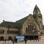 Dann kehren wir zum Wohnmobil zurück: zum Teetrinken und Postkartenschreiben. Nach der Pause spazieren wir erneut in die Innenstadt, mit dem festen Vorsatz, Bus zu fahren, was immer es auch kosten mag (die empfohlene City-Line N83). Haltestelle ist direkt an der Kathedrale. Doch der Busfahrer will unser Geld nicht. Wegen der G7-Treffens hat sich Metz nämlich selbst für zwei Tage zur Umwelthauptstadt ernannt, und in dieser Zeit ist das Benutzen des ÖPNVs gratis. Nach ein paar Runden „Stadtrundfahrt“ hüpfen wir am Bahnhof ab und schauen uns das sehenswerte Bauwerk (erbaut von 1905 bis 1908, vom Berliner Architekten Jürgen Kröger entworfen in neo-romanisch-wilhelminischen Stil, 2017 zum schönsten Bahnhof Frankreichs gewählt) von innen und außen an. Auch hier viel Polizei, bis an die Zähne bewaffnet.
