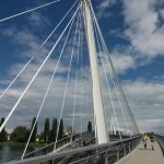 Wir umrunden die St. Martinikirche und gondeln dann auf der offenbar erst vor Kurzem neu gestalteten Promenade am Wasser entlang. Viel zu gucken: die Rheinbrücke Emmerich (mit 803 m die längste