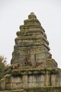 Wir schlappen weiter Richtung Affen- und Tigertempel. Zu Fuß nach Angkor Wat – das geht wohl nur in Osnabrück… Die Orang-Utans machen sich zwar im Moment etwas rar, lassen sich dann aber doch mal kurz draußen blicken. Immerhin. Es ist eben heute ein regnerisch-kalter Novembertag…