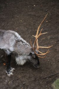 Hinter dem Tal der grauen Riesen betreten wir – satt und aufgewärmt – die hölzernen Hochstege durch das Kajanaland, sehen Rentiere, müde zusammengekuschelte Silberfüchse, herumtollende Vielfraße. Ein Waschbär guckt kurz aus seiner Hütte, taxiert das Wetter und zieht den Kopf gleich wieder zurück ins Warme.  Hybridbär Taps (Vater Eisbär, Mutter Braunbär) hat sich leider komplett verkrochen.