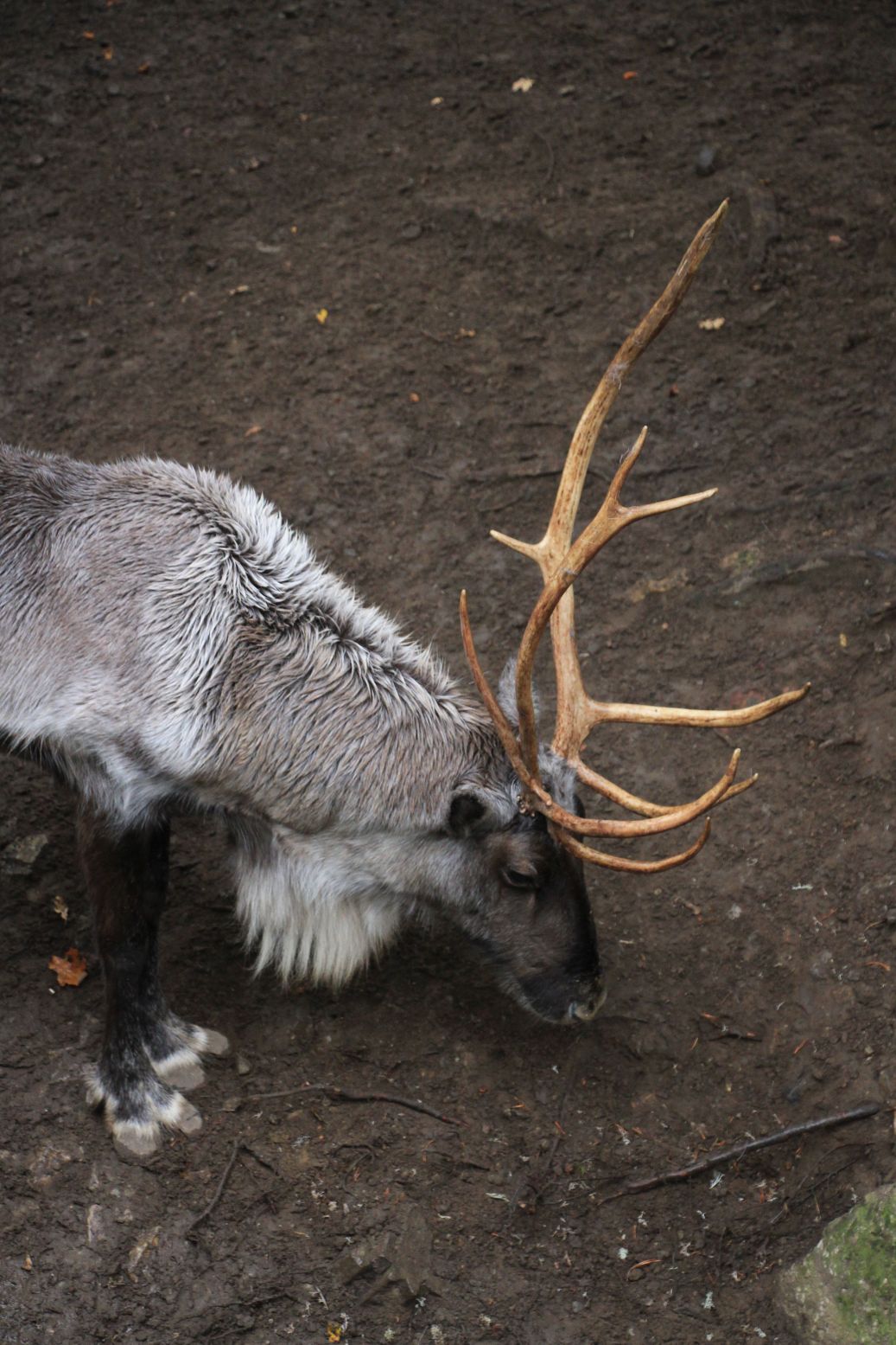 Hinter dem Tal der grauen Riesen betreten wir – satt und aufgewärmt – die hölzernen Hochstege durch das Kajanaland, sehen Rentiere, müde zusammengekuschelte Silberfüchse, herumtollende Vielfraße. Ein Waschbär guckt kurz aus seiner Hütte, taxiert das Wetter und zieht den Kopf gleich wieder zurück ins Warme.  Hybridbär Taps (Vater Eisbär, Mutter Braunbär) hat sich leider komplett verkrochen.