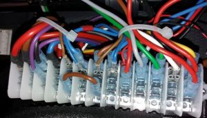 Dieser Block ist ein, ich nenne ihn mal „13x 5-Fach Verteiler“, hier können 13 verschiedene „Signale“ je 5 Mal über 6,3 mm AMP-Stecker-Fähnchen verteilt werden.