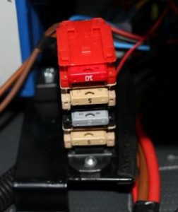 Dahinter, leider nicht gut erreichbar, ist noch ein Verteilerblock für Flachstecker versteckt.