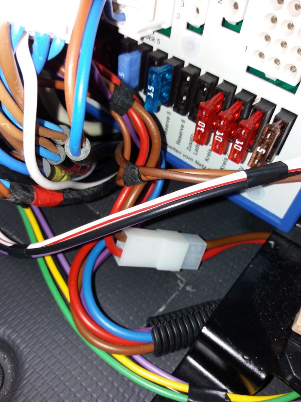 1x ca. 2,5 mm² an den Flachstecker-Verteilerblock, rechts neben dem EBL